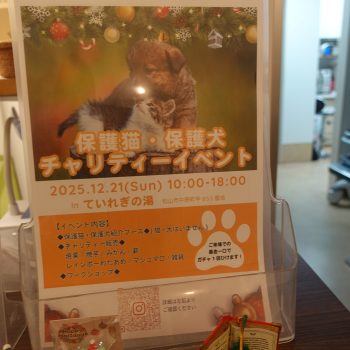 - ★イベントのご案内★ 12月21日(日曜日)ていれぎの湯で光心堂に来てくださっている飼い主様がイベントをされるそうです(^^)/ ご興味のある方は是非♪ […]